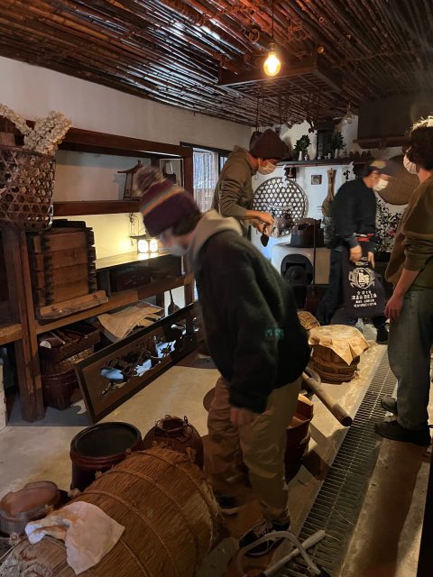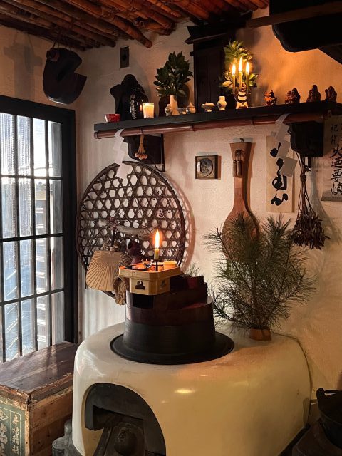 聴福庵での私の体験のハイライトは、年末の煤払いだ。年の瀬の聴福庵の台所には、至る所に煤がたまっていた。この煤の蓄積の分、人の営みがそこにあった。カマドはその都度、火を宿し、温かい熱を提供してきた。多くの同世代と同じく、私にはカマドがある家で暮らした経験がない。現代的な住居の掃除であれば、塵や埃を掃除機で吸引して終わりである。しかし、煤は中々落ちない。雑巾を濡らして拭く。すぐに真っ黒になる。洗って、また拭く。その繰り返し。最初は途方もない作業のように思えたが、気づけば、雑巾掛けに没頭していた。